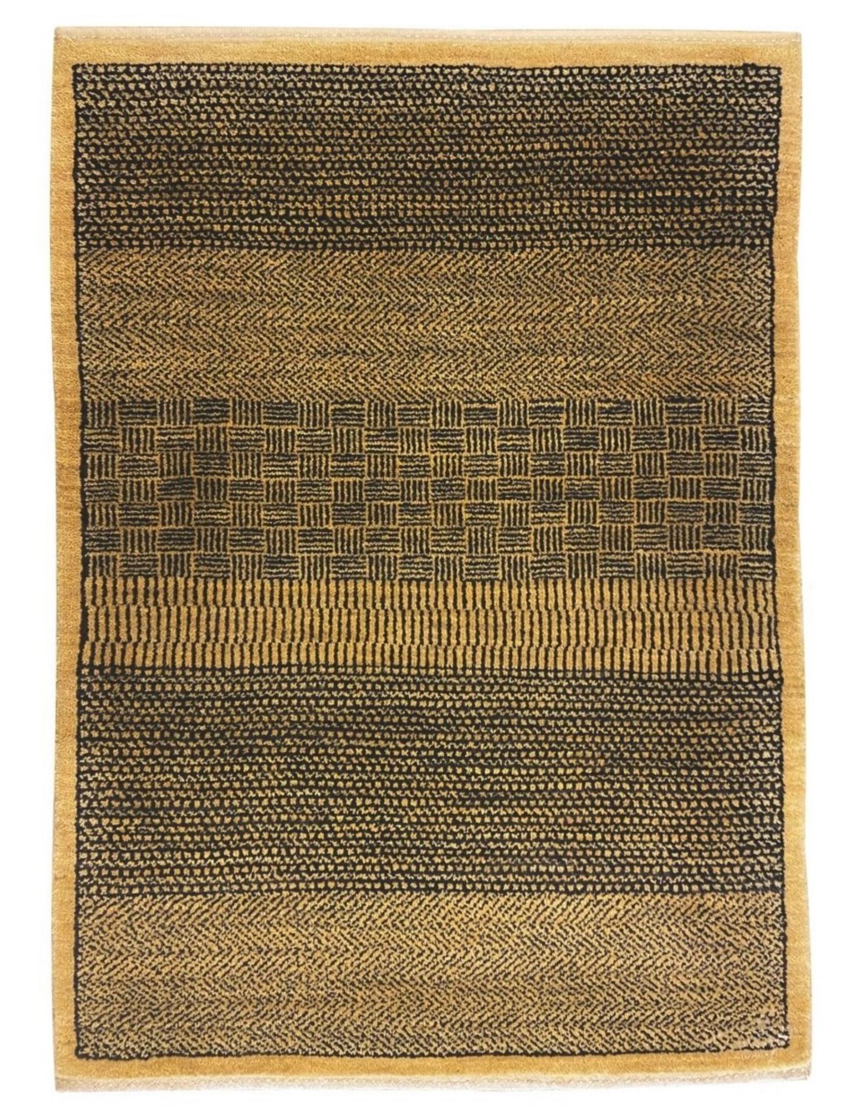 Inspired by the shifting shapes of rainfall, the Rain Collection brings subtle texture and modern elegance to any space. This indigo and gold hand-knotted wool carpet combines tribal-inspired motifs with a clean, minimalist layout, creating a calming, versatile backdrop for contemporary and classic interiors alike. Soft, durable, and crafted with meticulous Persian weaving techniques, Rain delivers timeless design, everyday functionality, and the signature quality of Orley Shabahang.